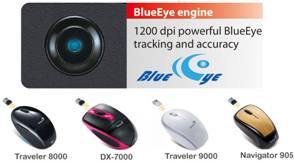 La tecnología BlueEye incluye en sus dispositivos un motor de precisión óptico BlueEye avanzado de 1200 dpi, que aumenta la precisión de los mouses inalámbricos para un máximo control de rastreo, e incorpora la tecnología inalámbrica de 2.4GHz para reducir la interferencia de radiofrecuencia para lograr una mejor cobertura operacional, mientras que reduce el consumo energético en comparación a la tecnología anterior de 27 MHz. Además, cada dispositivo cuenta con un interruptor para apagarlo en caso de que no se los utilice, extendiendo aun más su vida útil por hasta 6 meses.
