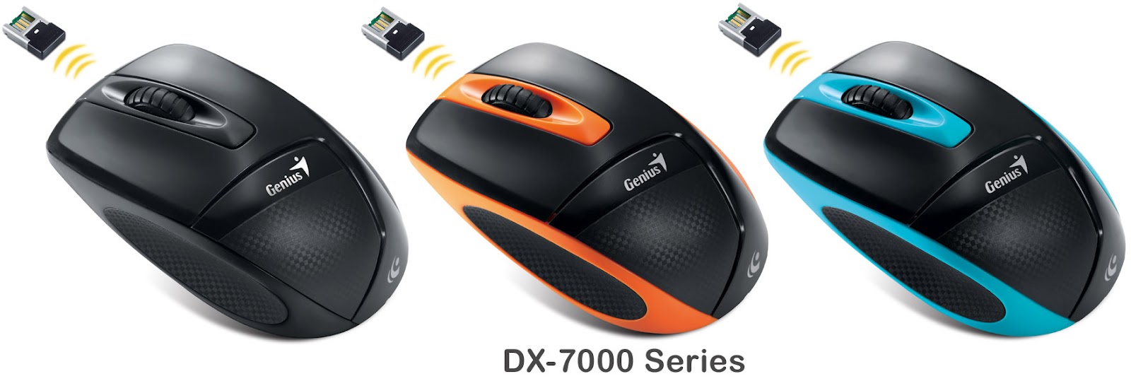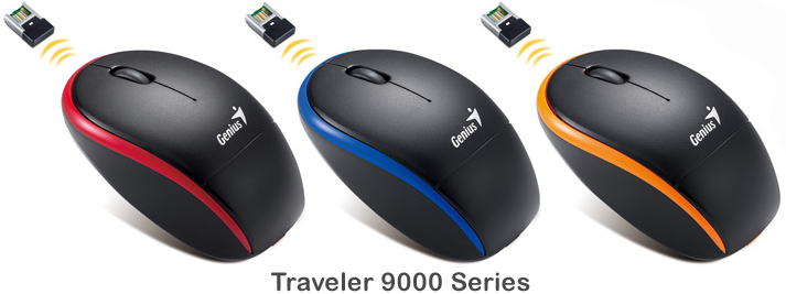 Genius cuenta con una amplia gama de mouses inalámbricos con tecnología BlueEye que incluyen el DX7000, Traveler 8000, Traveler 9000 y Navigator905 Bambu. Por un lado, el DX7000 de tres botones, cuenta con una llamativa apariencia y brinda una gran comodidad debido a su diseño ergonómico y sus agarres de goma suave por los lados laterales. Además brinda a los usuarios distintas opciones de colores: negro, rojo, naranja, azul, durazno o verde. Por su lado, el Traveler 8000 viene con cinco botones, los tres comunes más dos extras que pueden ser programados con funciones específicas de preferencia del usuario. Otro de los mouse de esta serie es el Traveler 9000, que cuenta con un diseño deportivo todo negro con franjas a elegir entre diferentes colores: negro, azul, amarillo, rubí, y una edición limitada en beige nieve. Los modernos y cómodos diseños de los mouse Traveler 9000 permiten un agarre confortable para que pueda utilizarse sin molestias.