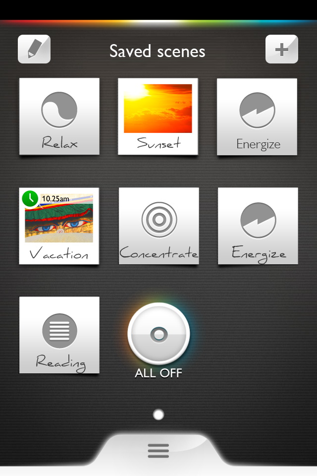 Guardar escenas de luz favoritas para cada habitación u horario del día y activarlos en un instante