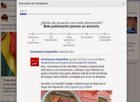 Se le mostrarán 10 posts a los usuarios y ellos deberán seleccionar entre las siguientes opciones qué es lo que les genera. “Estoy en desacuerdo” o “Estoy de acuerdo”. Aunque la encuesta parece confusa, sirve para mejorar el funcionamiento del News Feed. Existen ciertos posts que la gente disfruta de ver pero decide no poner “Me gusta” por alguna razón. Esta encuesta es una forma ver estas señales implícitas y distinguir entre lo que la gente aprecia ver y lo que la gente no quiere ver.