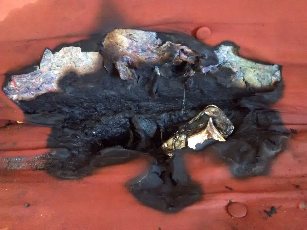 Luego la batería del teléfono estallo (todo esto sucedió en pocos segundos) y se empezó a prender fuego el sillón.