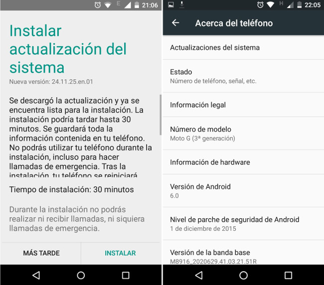 Con ustedes las capturas de la versión recién actualizada en un MotoG 3 en Argentina. Tengan en cuenta que puede tardar la llegada de Marshmallow a los equipos vía OTA (over the air).