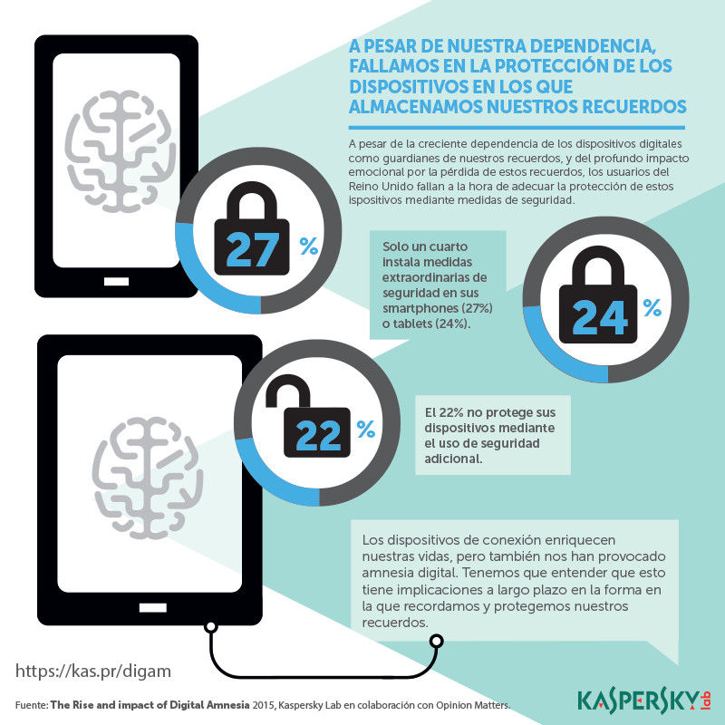 «La Amnesia Digital es un reflejo de la sociedad conectada actual que por medio de aplicaciones, redes sociales y la misma web busca obtener información de manera inmediata. Nuestro estudio sobre esta situación muestra cómo ya no retenemos en nuestra memoria la información que podemos almacenar y recuperar con un dispositivo digital o Internet. Ahora estamos descubriendo que la Amnesia Digital también está influenciada por fuerzas más amplias, incluyendo la necesidad de respuestas inmediatas cuando nos enfrentamos a una pregunta. ¿Nos hemos convertido no sólo incapaces o poco dispuestos sino demasiado impacientes para recordar?», comentó Dmitry Bestuzhev, Director del Equipo de Investigación y Análisis para Kaspersky Lab América Latina.