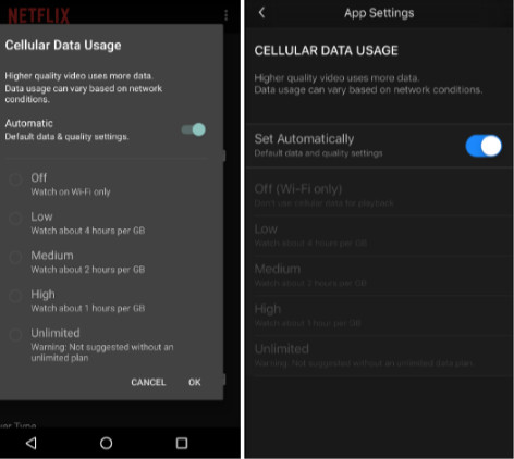 Al configurar el uso de datos, primero se debe comprobar que la aplicación de Netflix para iOS o Android tenga la versión más reciente y luego ir a “Configuración de aplicaciones (App Settings)” en el menú y a “Uso de datos celulares (Cellular Data Usage)”. Allí se puede desactivar el ajuste predeterminado y elegir una configuración de uso de datos más alta o baja, o incluso quitar los límites, según el plan de datos móviles contratado. Para más información sobre la interacción entre la nueva configuración celular y la configuración de la cuenta, puedes leer este artículo en el Centro de ayuda.