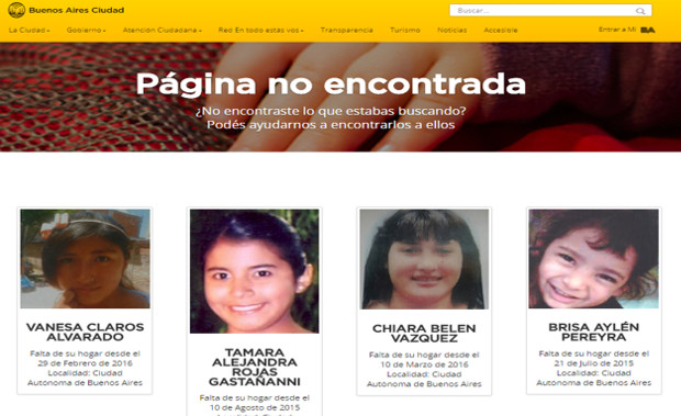 – En el marco del Día Mundial de Internet, el Gobierno de la Ciudad de Buenos Aires se sumó a la iniciativa que permitirá utilizar las páginas de Error 404 para difundir imágenes e información de menores extraviados.