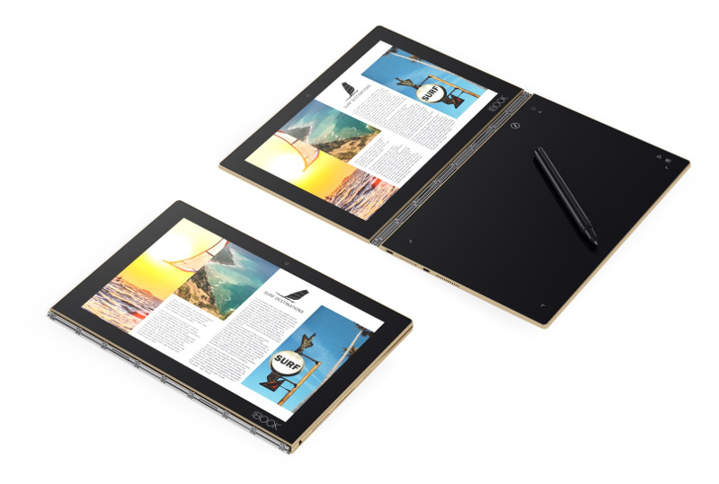 Lenovo lanzó la Yoga Book, la tablet 2 en 1 más delgada y liviana del mundo diseñada para obtener una productividad inigualable. Creada para la movilidad y para resolver los desafíos más comunes de los usuarios de tablets (cómo lograr productividad y diversión en un solo dispositivo). Hasta ahora, hemos estado usando tablets de maneras en las que no se suponía que las usáramos: Para ser productivos, por ejemplo, lo que termina siendo un problema cuando tipeamos o usamos el lápiz en una pantalla táctil que estás usando en movimiento. La Yoga Book quita esa dificultad tomando los bloques fundamentales del ADN de una gran tablet, es decir, su portabilidad, la duración de la batería y un nutrido ecosistema de aplicaciones, para luego tejerlos en una red de productividad y creatividad a través de un paquete de poderosas funciones de hardware y software, entre las que se incluyen: