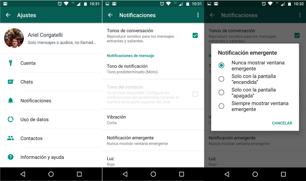 Y para ello es que les traigo este tipo muy simple; donde con tan solo tres pasos pueden quitar las ventanas emergentes que abre Whatsapp de forma total.