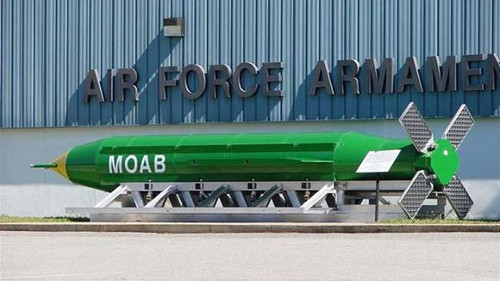 Adam Stump, portavoz del Pentágono, dijo que es la primera vez que se usa la bomba en combate, conocida como GBU-43 y la cual contiene 11 toneladas de explosivos. La Fuerza Aérea la apoda MOAB («Mother Of All Bombs» o «madre de todas las bombas»).
