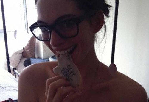 Esta vez le toco a Anne Hathaway; quien aparece desnuda junto a su marido, el también actor Adam Shulman.