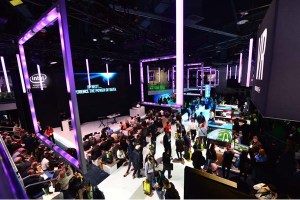 Intel Corporation's booth at the 2018 Consumer Electronics Show (CES) creates an immersive journey that communicates how Intel unlocks the power of data in the context of artificial intelligence, 5G communications, autonomous driving and virtual reality. Intel displays how the power of data is affecting our daily lives at 2018 CES from Jan. 8-12 in Las Vegas. (Credit: Walden Kirsch/Intel Corporation)
