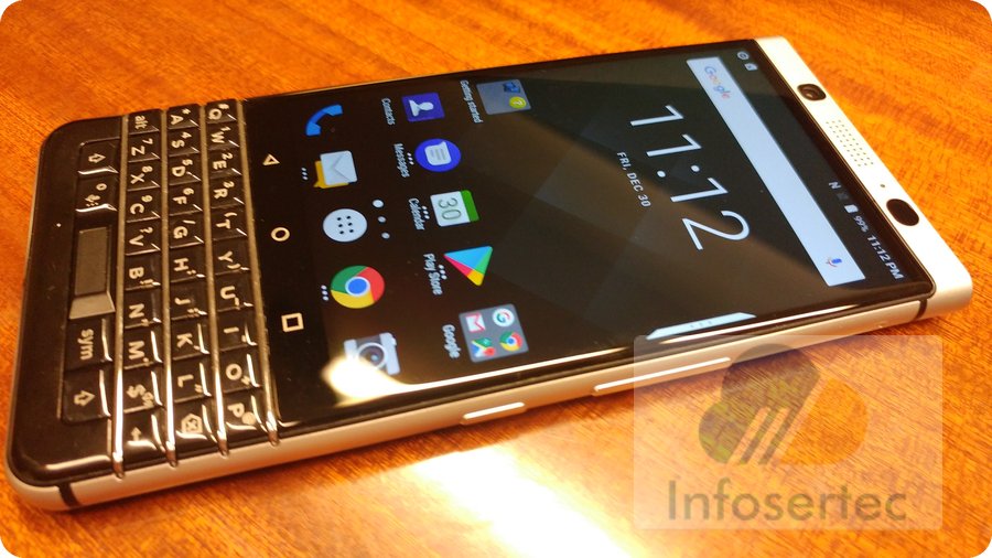 BlackBerry KEYone; el mismo trae el sistema operativo Android 7.1; pantalla de 4.5 pulgadas bajo la resolución de 1620×1080; (434PPI) protección en el cristal de Gorilla Glass 4; teclado físico QWERTY clásico de Blackberry; una cámara principal de trasera de 12MP con el sensor de cámara Sony IMX378; y cámara frontal de 8MP.