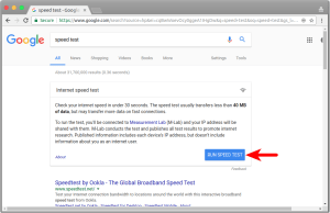- Haga click en el botón «RUN SPEED TEST» que se muestra en primer lugar debajo de la barra de búsqueda, como se indica a continuación.