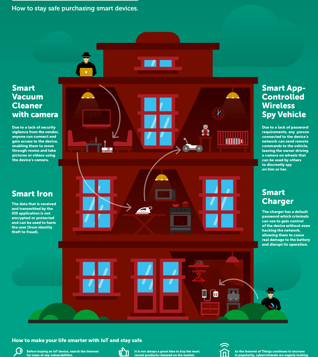 • Aumentar su conocimiento de seguridad consultando la información más reciente sobre vulnerabilidades descubiertas y corregidas de los dispositivos inteligentes, que generalmente está disponible en línea.