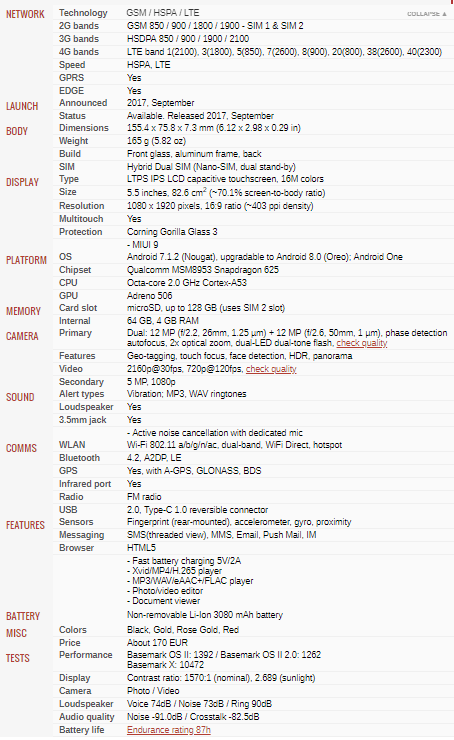 Las especificaciones técnicas del Xiaomi Mi A1 son las siguientes: