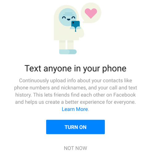 Además confirma que Facebook no recopila el contenido de llamadas o mensajes de texto, y que la información recopilada no se vende a terceros. Y que se puede quitar el permiso cuando el usuario lo crea necesario.