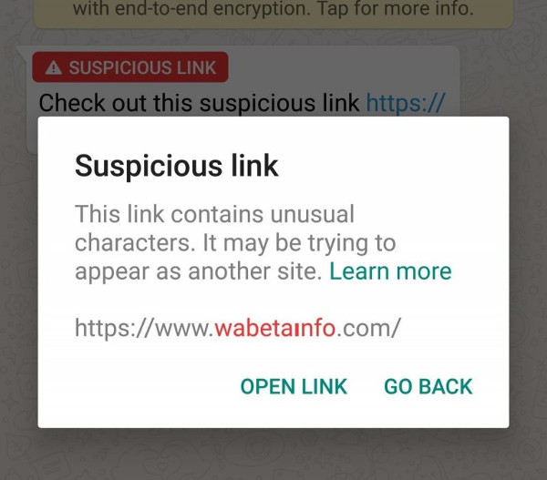 Para poder utilizar esta funcionalidad, hasta el momento, es necesario tener la última beta, con versión 2.18.221 o posterior. Con esta versión se activará de forma automática la función de “Detección de enlaces sospechosos“.