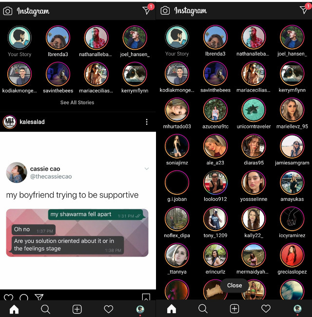 Instagram está probando una nueva interfaz para Historias que los pone a todos en una página para darle a la función un enfoque central en la aplicación.