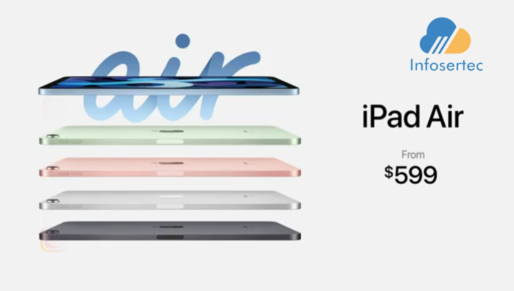 Los modelos Wi-Fi de iPad Air estarán disponibles con un precio inicial de $599 (EE. UU.) Y los modelos Wi-Fi + Cellular a partir de $729 (EE. UU.). El nuevo iPad Air, en configuraciones de 64GB y 256GB, estará disponible en cinco hermosos acabados que incluyen plata, gris espacial, oro rosa, verde y azul cielo.