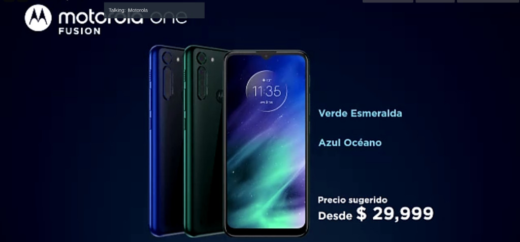 El motorola one fusion ya se puede conseguir en dos colores: azul océano y verde esmeralda. Disponible a través de la tienda Motorola y las principales cadenas y operadores del país a un precio sugerido a partir de $29,999.