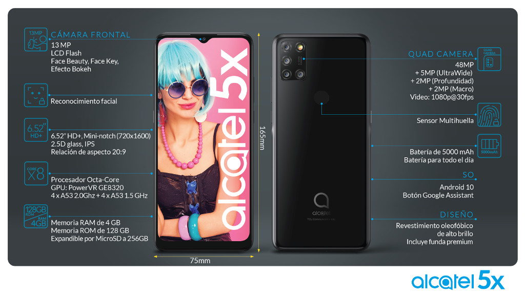 El Alcatel 5X es un equipo de avanzada en todos sus componentes que responde a un cliente exigente que busca un celular veloz con gran autonomía, una buena cámara y tecnología de vanguardia.