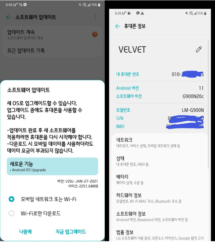 La versión estable de Android 11 se está enviando actualmente en Corea del Sur para el Velvet 5G, modelo LM-G900N. El firmware tiene la versión de software G900N2C y requiere una descarga de alrededor de 2,2 GB.