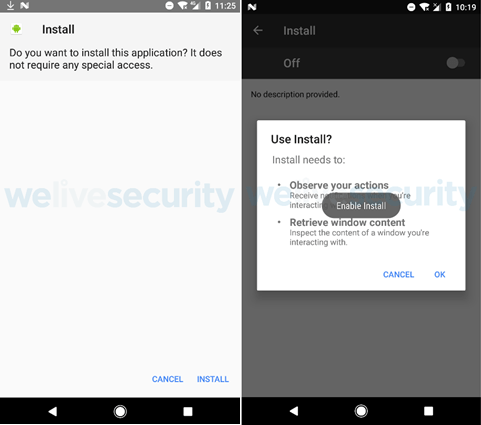La utilización del doble factor de autenticación (2FA) mediante SMS para evitar que alguien logre acceder a las cuentas no necesariamente ayudaría en este caso, ya que el malware también puede interceptar mensajes de texto. La aplicación maliciosa también solicita a la víctima que habilite los servicios de accesibilidad, permitiendo efectivamente que los delincuentes tomen el control del dispositivo.