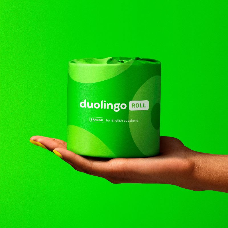 - Aprovechá esos momentos de confort en solitario y convertilos en minutos de lecciones con el nuevo papel higiénico de Duolingo.
