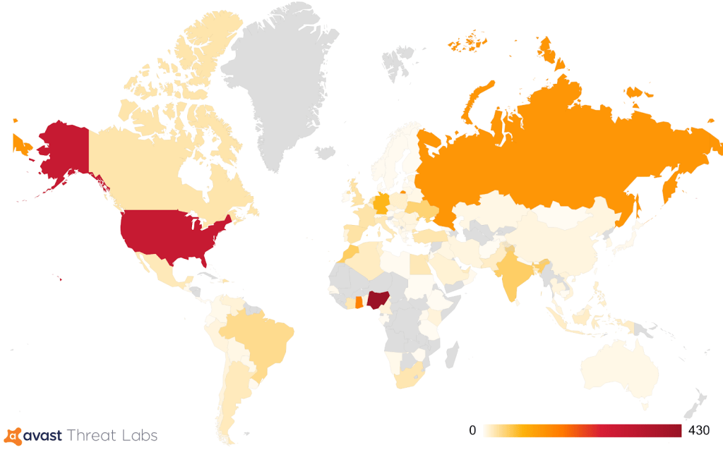Los formatos de las direcciones de billetera que HackBoss comprueba son las criptomonedas Bitcoin, Ethereum, Dogecoin, Litecoin y Monero, pero la mayoría de ellas son billeteras Bitcoin. El análisis realizado por investigadores del Laboratorio de Amenazas de Avast revela además que las víctimas de HackBoss se encuentran principalmente en Nigeria y Estados Unidos, y que los autores de malware pueden haber recibido más de medio millón de dólares (US $ 560,451.08) en fondos de criptomonedas redirigidas (aunque parte de esa cantidad también puede reflejar ganancias por ventas de software falso).