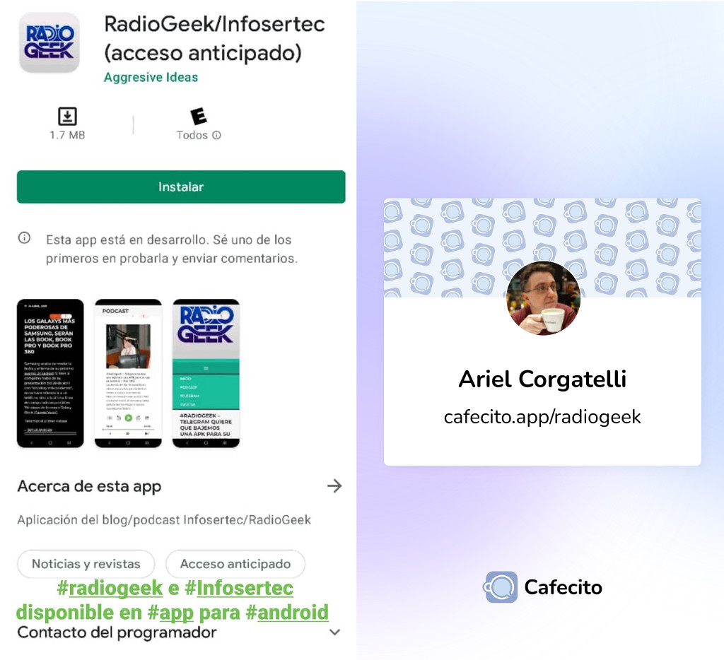 Hace mucho que no publicamos los avances que vamos llevando adelante en nuestros proyectos Radiogeek e Infosertec. La primera novedad es que tenemos una aplicación oficial en Google Play Store. La misma se encuentra en estado beta ya que la estamos puliendo para lanzarla a producción, cosa que no influye para que la puedan instalar desde el enlace final que publicamos.