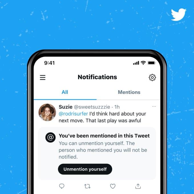 Twitter está explorando los primeros conceptos de una función que permitiría a los usuarios «deshacerse» los tweets. Dominic Camozzi, un diseñador de productos de Twitter, compartió capturas de pantalla de cómo podría verse la función. Una vez que se menciona a un usuario en un tweet, se le presentará un mensaje que dice: “Has sido mencionado en este tweet. Puedes deshacerte de tu mención».