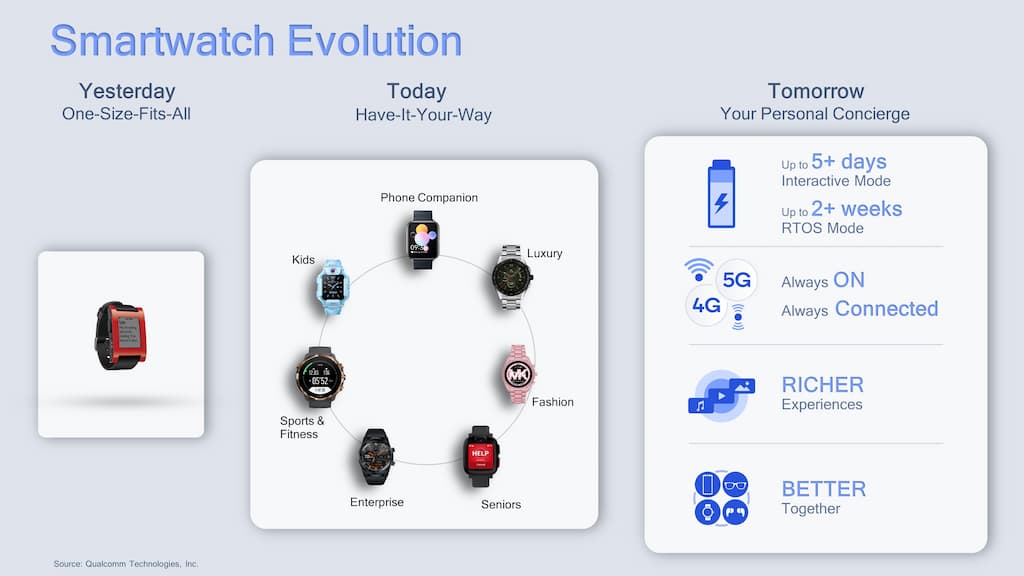 Qualcomm continúa invirtiendo en nuevas plataformas Snapdragon Wear para satisfacer las diversas necesidades de los clientes en una multitud de sistemas operativos con su enfoque arquitectónico híbrido único, variedad de versiones de software y diseños de referencia. «Visualizamos un mundo hiper segmentado de dispositivos portátiles. Creemos que Qualcomm Technologies tiene un papel importante que desempeñar para acelerar esta realidad al unir nuestras plataformas e inversiones en el ecosistema», continuó Kedia.