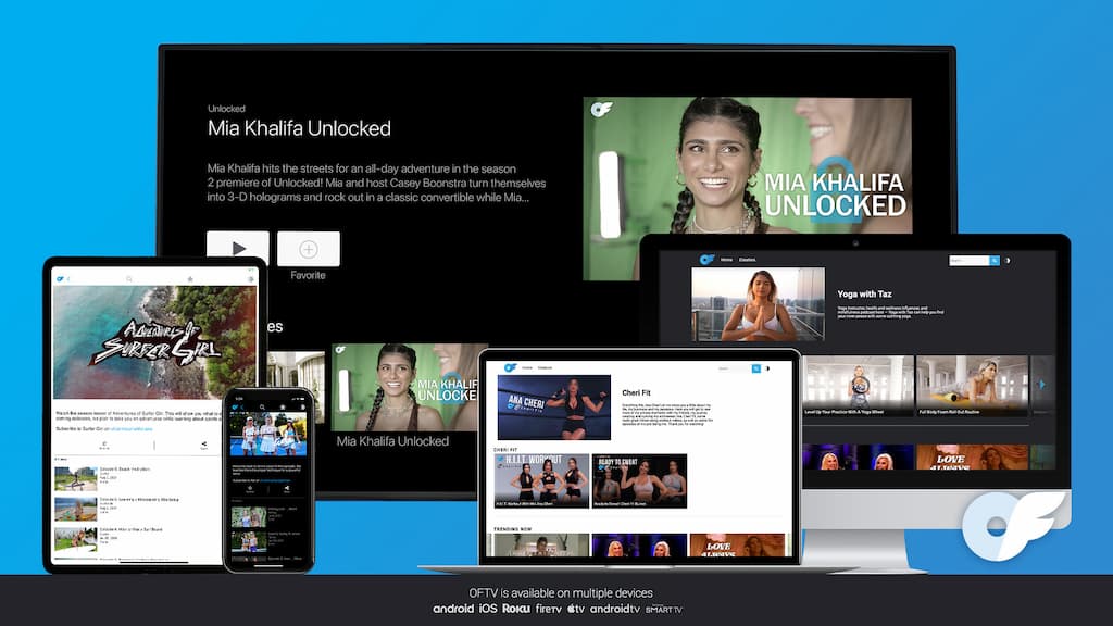 La aplicación ofrece más de 800 videos con lecciones en la aplicación, como baile, cocina, meditación, surf y más. Los canales actuales de los creadores de OFTV incluyen Cheri Fit , Yoga with Taz y Tennis Class with Adi.