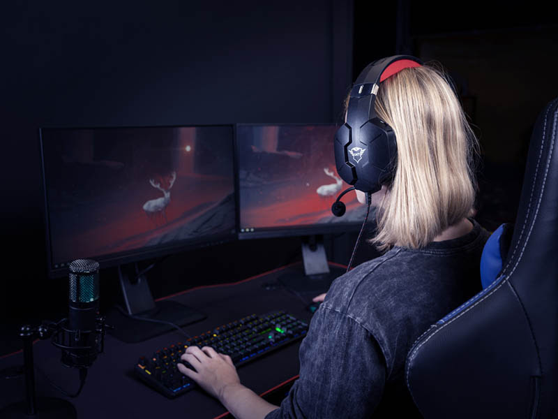 | Finalmente, para quienes deseen actualizar sus auriculares, Trust recomienda sus GXT 323 Carus, una opción ideal para tus largas noches de juego con amigos gracias a sus cómodas almohadillas que permitirán jugar por horas sin molestias, su sonido de alta calidad con bajos penetrantes ideal para escuchar música e identificar precisamente donde están tus enemigos, y un micrófono flexible ideal para comunicarte de forma eficiente con tus compañeros. Segmento competitivo Si eres de quienes juegan de manera competitiva y deseas maximizar tu rendimiento a la hora de jugar, Trust también tiene recomendaciones que te ayudarán a alcanzar la victoria en el más alto nivel. |