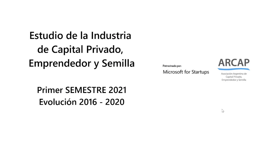 La Asociación Argentina de Capital Privado, Emprendedor y Semilla (ARCAP) y Microsoft presentaron una nueva versión del Estudio de la Industria de Capital Privado, Emprendedor y Semilla en Argentina(*), que analizó la evolución de las inversiones en el ecosistema emprendedor local durante el primer semestre de 2021 (Fuente Microsoft Argentina).