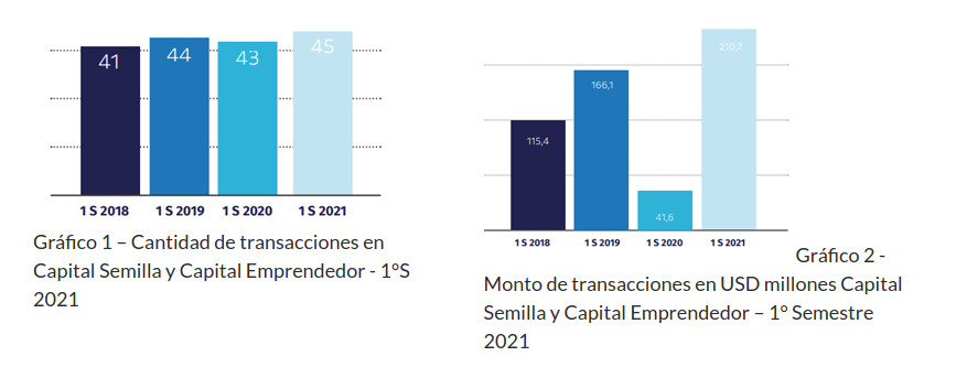 En cuanto a los montos, desde el 2016 hay una tendencia de crecimiento sostenido en el número de transacciones de capital emprendedor (incluso durante 2020, con el estallido y la agudización de la pandemia). Sin embargo, en estos primeros seis meses del 2021, se invirtieron USD 201 millones. Esto demuestra que ha sido el mejor primer semestre que se relevó hasta el momento, lo que refleja el fortalecimiento del sector, no solo en cantidad de transacciones, sino los montos invertidos.