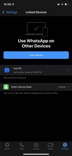 Los usuarios de la última versión 2.21.180.14 de WhatsApp para iOS que se hayan inscrito en el programa beta ahora recibirán un mensaje multidispositivo en la sección Dispositivos vinculados dentro de Configuración. La gran ventaja de utilizar la compatibilidad con varios dispositivos es que no es necesario que mantenga su teléfono en línea. La adición de un nuevo dispositivo ocurre escaneando un código QR con su teléfono como en WhatsApp Web.