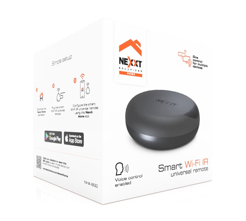 Smart IR de Nexxt Solutions integra tecnología de aprendizaje automático, por lo que es capaz de detectar los códigos de los controles de mando remoto originales en forma instantánea, permitiendo al usuario reemplazarlos con un solo controlador IR inteligente. Admite un máximo de 50 dispositivos controlados por luz infrarroja, incluyendo televisores, decodificadores, DVD, ventiladores, sistemas de audio e incluso los equipos de aire acondicionado.