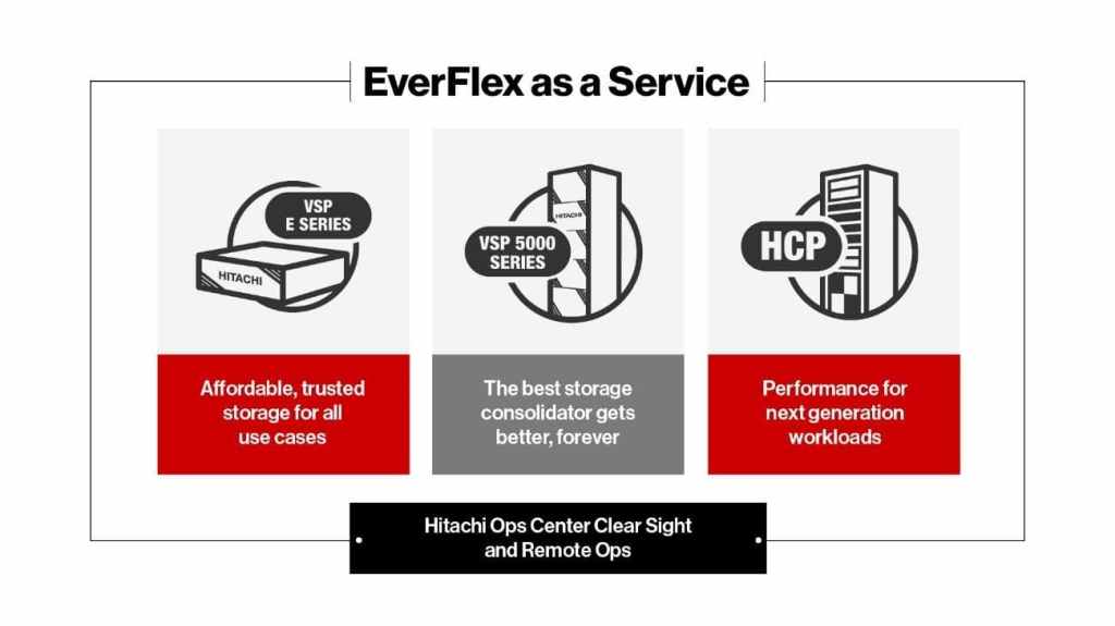 La VSP 5000, la Serie E y la Plataforma de Contenidos de Hitachi Vantara, pueden adquirirse en todo el mundo desde Hitachi Vantara y su red global de socios. Todas las soluciones se encuentran disponibles, a través de EverFlex; el modelo de consumo “Como Servicio” de Hitachi Vantara.