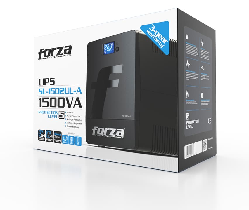 «La nueva serie SL de sistemas UPS inteligentes de Forza ha sido rediseñada con una innovadora pantalla LCD táctil, caracterizada por una interfaz de usuario fácil de usar y por la visualización de los niveles de energía en tiempo real. Esta serie se ha posicionado a la vanguardia en su clase al integrar la regulación de voltaje, la supresión de sobretensión y las funciones de respaldo, todo en una sola unidad», explicó Suco, y concluyó: «Además, ofrece protección gigabit para dispositivos de red, de comunicación VoIP y módems, que evita que sobrevoltajes circulen a través de la línea ethernet potencialmente perjudiciales para dispositivos electrónicos sensibles. Las UPS de la Serie SL incluyen el software de monitoreo ForzaTracker para la fácil administración del sistema directamente desde la computadora, a través de un puerto de comunicación USB. Con el fin de asegurar el funcionamiento consistente con su destacado servicio al cliente, Forza respalda la serie FX con una amplia garantía de 3 años».