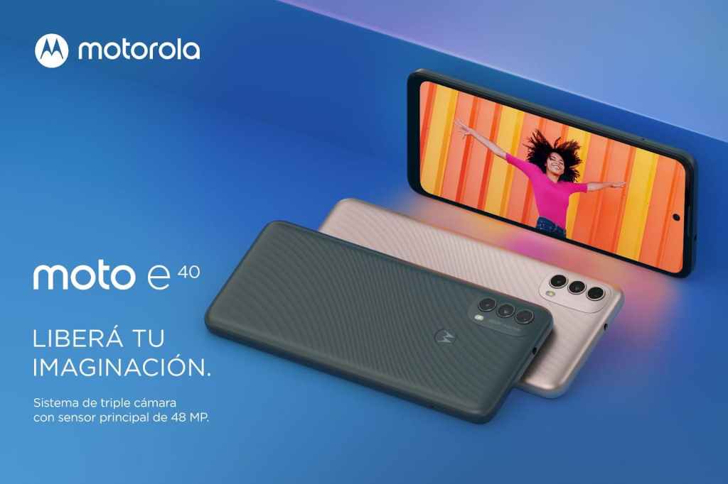 Motorola Argentina presenta el moto e40, un nuevo dispositivo. El nuevo moto e40 cuenta con un sistema de triple cámara con sensor principal de 48MP con tecnología Quad Pixel, procesador octa-core con 4GB de RAM, batería de 5000 mAh, una pantalla Max Vision HD+ de 6,5 pulgadas con una frecuencia de actualización de 90Hz y lector de huellas digital (Fuente Motorola Argentina).