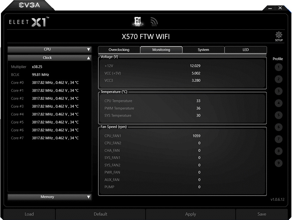 ELEET X1 también te permitirá monitorear frecuencias, voltajes, velocidades de fans, y todos los aspectos vitales de tu sistema, para garantizar que tu sistema trabaje de manera óptima y estés sacando lo máximo de el sin sobrepasarte en temperaturas ni voltajes y así puedas disfrutarlo durante el máximo tiempo posible.