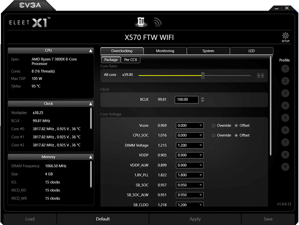 Además de contar con una poderosa BIOS con ajuste manual de frecuencias, voltajes, latencias, y todas las configuraciones necesarias para sacar el máximo rendimiento de tu sistema si eres un usuario entusiasta, y la herramienta incorporada OC Robot para realizar overclocking automático si eres un usuario más casual, la EVGA X570 FTW también es compatible con el software ELEET X1 que permitirá tener acceso completo a voltajes y frecuencias para overclockear tu procesador dentro de Windows y probar hasta donde es capaz de llegar sin tener que reiniciar tu sistema.