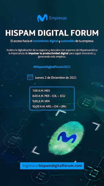Asimismo, la compañía cuenta con más de 2.3 millones de clientes empresariales en todo Hispanoamérica, entre corporaciones, empresas y pymes. Precisamente para sus clientes desarrolló el segundo Hispam Digital Fórum: el acceso hacia el crecimiento digital y sostenible de tu empresa, el jueves 2 de diciembre. El evento se realizará en formato híbrido (presencial y digital) para analizar las oportunidades que el mundo digital ofrece a las empresas.