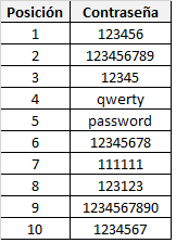 La siguiente tabla, permite observar cuáles fueron las contraseñas más elegidas por los usuarios en el 2021 a nivel global. Se puede observar de forma muy clara la preferencia por las diferentes combinaciones numéricas y lo repetitivas que son las variaciones.