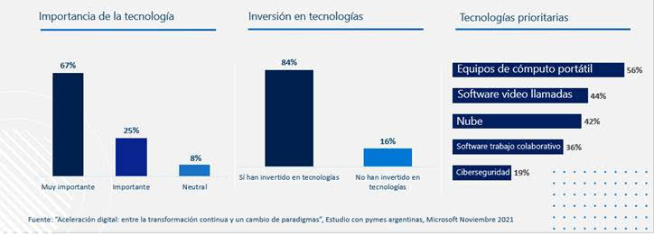 De acuerdo con un relevamiento de CAME,las micro, pequeñas y medianas empresas representan el 44% del PBI nacional y movilizan del 70% del empleo privado del país. Por este motivo, Microsoft presentó el estudio Aceleración digital: entre la transformación continua y un cambio de paradigma, desarrollado por Edelman (Fuente Microsoft Argentina).