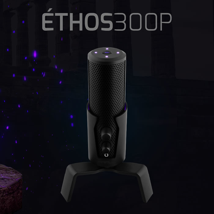 «ÉTHOS300P posee un práctico conector USB con configuración automática plug and play, para comenzar a transmitir, grabar y difundir vía podcast al instante. Además, tiene un patrón de iluminación led multicolor, blanco, verde, azul, morado y amarillo, que le permite al usuario crear una atmósfera más vibrante y cautivante, y que se puede apagar completamente», detalló Erika Merlo. Y agregó: “Incluye un conector de 3,5mm que permite al usuario conectar auriculares para escuchar y monitorear con precisión mientras graba. El control de volumen dedicado facilita el ajuste uniforme de los auriculares, con el fin de obtener un sonido nítido cuando graba o difunde vía podcast. Además, trae un soporte de metal removible, con ajuste de inclinación en una de las patas, que permite posicionarlo en el ángulo adecuado.»