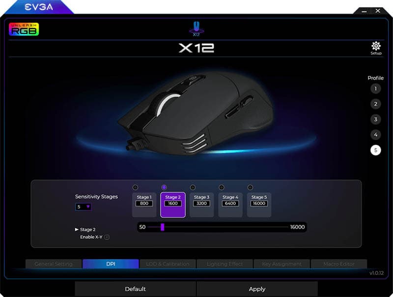 El software EVGA Unleash RGB ofrece control y personalización completa para su mouse EVGA X12. Personalice y cargue hasta 5 perfiles personalizados en la memoria incorporada del mouse para llevarlos a donde vaya, configure la calibración del sensor de distancia, seleccione los colores y efectos de sus 3 zonas de iluminación, y cree sus propios macros utilizando Unleash RGB.