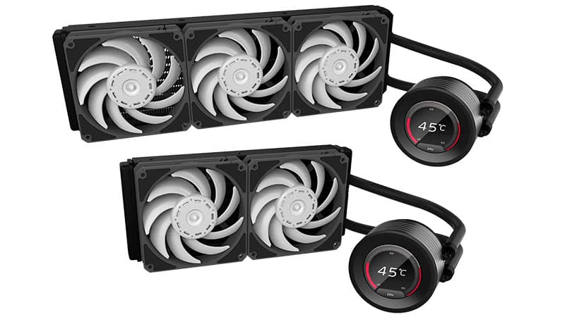 Por el lado de la estética, este AIO también trae grandes novedades con el agregado de una pantalla LCD a color de 2.1” con resolución 480x480px sobre su bloque de CPU, la cual nos permitirá mostrar imágenes o texto personalizados, como también monitorear los aspectos principales de nuestro CPU, DRAM, y GPU incluyendo frecuencias, temperaturas, voltajes, y demás datos vitales.