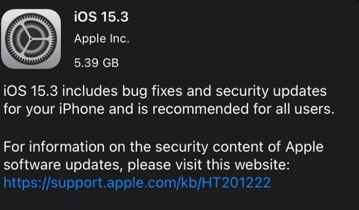Apple ha lanzado iOS 15.3 al público de todo el mundo. La versión fue lanzada luego de que se haya liberado la versión Release Candidate (RC) la semana pasada. Esta actualización de versión a iOS 15 está disponible para descargar como una actualización inalámbrica (OTA) en un iPhone compatible.
