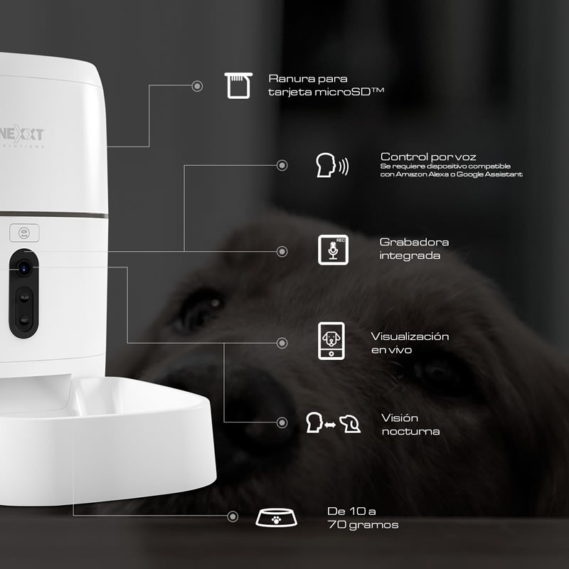 Características del Dispensador Inteligente de alimento para mascotas de Nexxt Solutions en Chile